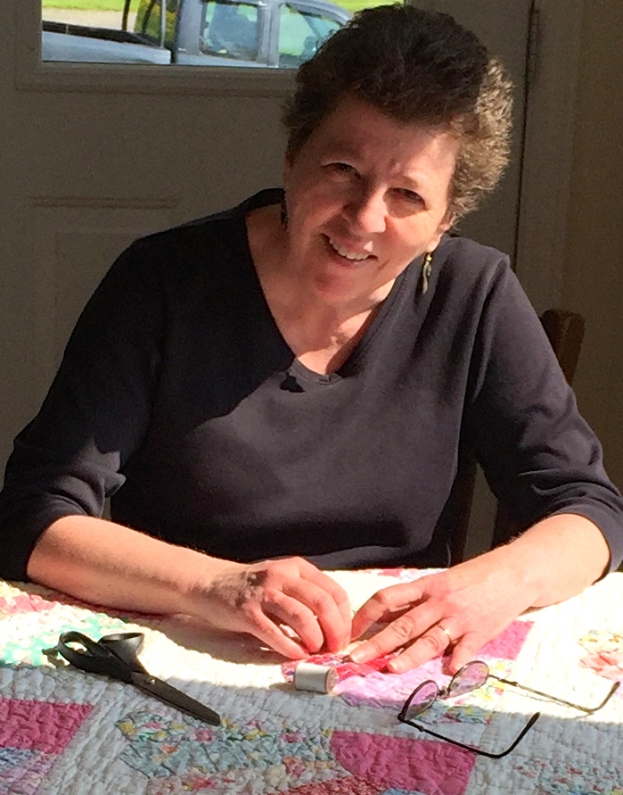 Marian Langhus mending a quilt at her home and BnB in the Village of Gagetown in New Brunswick, Canada. She started mending quilts with the idea that during Lent of 2016 she would work on something to fix every day! This sacrifice for Lent turned into a passion and she started buying antique and vintage quilts to mend and resale. In addition to needlework, Marian has gained significant knowledge about stain removal. She will tell you her best secrets if asked! Check out the blog for her most amazing story! (Also http://www.langhousebandb.com)